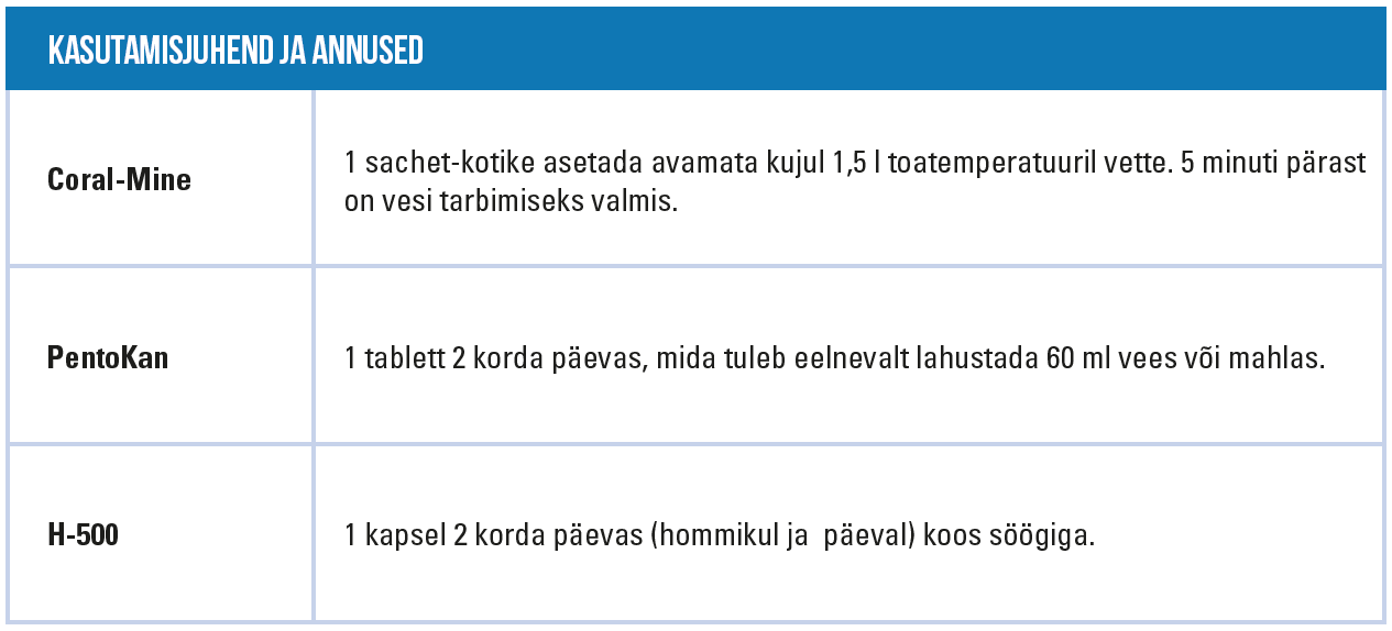 - programmi läbimise ajal on soovitatav juua päevas vähemalt 1,5 l Coral-Mine kompositsiooniga vett;